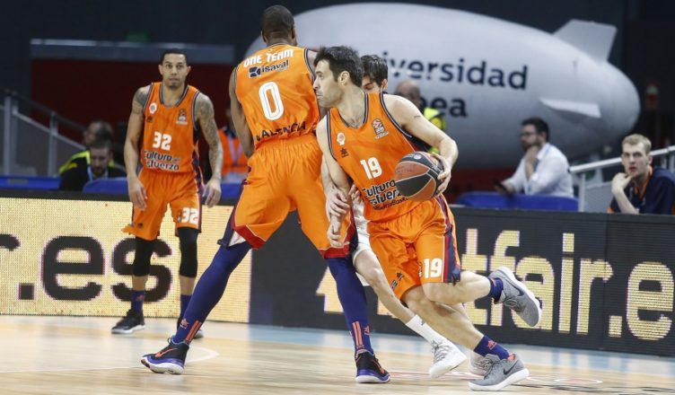 El entrenador Txus Vidorreta comenzó el partido poniendo en pista el quinteto formado por Guillem Vives, Erick Green, Fernando San Emeterio, Will Thomas y Bojan Dubljevic. Un triple del pívot montenegrino fue la primera canasta del equipo taronja en un inicio de partido que fue un duelo ofensivo entre Dubljevic y Causeur. Erick Green se unió para mantener por encima al equipo y un triple de San Emeterio ponía el 8-11 al paso por el ecuador del primer cuarto. Los interiores del equipo blanco pusieron por delante al cuadro local antes de un triple lejano de Van Rossom al que replicó Thompkins con otro desde la esquina. Una canasta tras robo de Campazzo llevó a Vidorreta a parar el partido con 17-14 y aunque el Real Madrid se puso cinco arriba, Green desde la personal disminuía la renta local. Un 2+0 de Reyes y un triple de Doncic pesaban más que la canasta de media distancia de Doncic para dejar el marcador en 24-18 tras el primer cuarto.