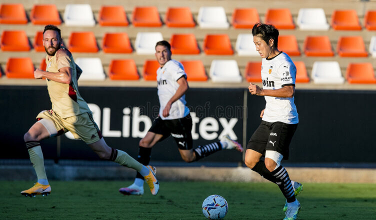 Con el orden sobre el césped como una cuestión innegociable, el Valencia CF quiso mandar desde el principio, con Kang In buscando el gol con un lanzamiento lejano desde fuera del área. Al equipo se le ve más fuerte físicamente, activando la presión tras pérdida y presionando la salida del balón rival. Poco a poco el partido se igualó, pero destacaban las conducciones por el carril derecho de Jason, Kang In con libertad de movimientos para entrar en contacto con el balón y Manu Vallejo peleando cada balón como si fuera el último del partido.