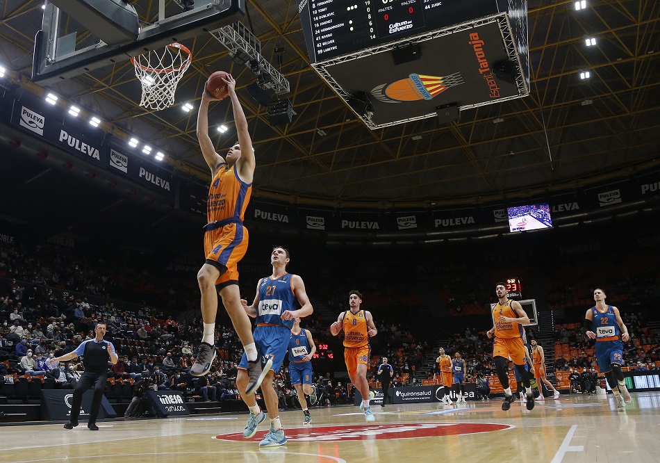 El entrenador Joan Peñarroya comenzó el partido con el quinteto formado por Martin Hermannsson, Josep Puerto, Víctor Claver, Jaime Pradilla y Mike Tobey. Un alley-oop bajado por el pívot taronja fue la primera canasta del partido y pese a la canasta de Günther, Pradilla y dos triples de Claver y Puerto dieron una primera renta al cuadro taronja tras los primeros dos minutos con el 10-2.