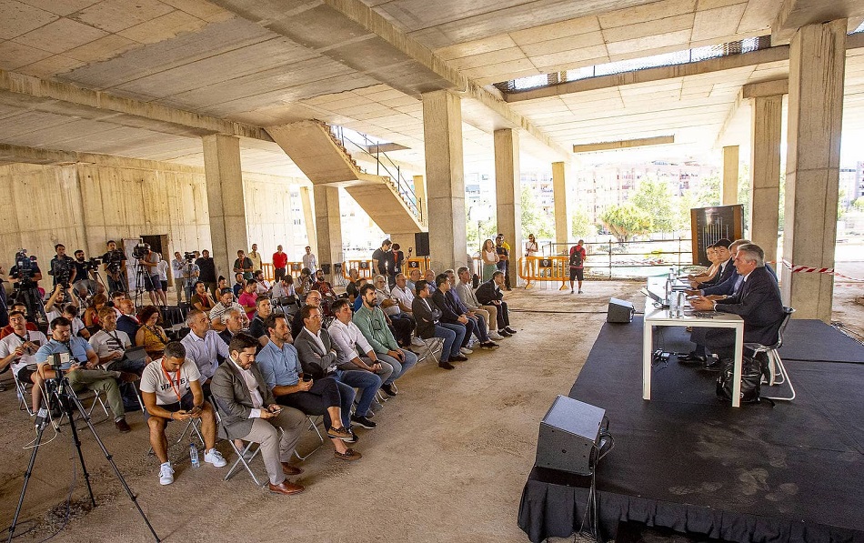 Ha sido un acto para dar a conocer el nuevo plan de Meriton para acabar la obra, amortizada, en parte, con el dinero que el club recibirá de LaLiga del fondo CVC. Según se ha indicado será un nuevo estadio que se inaugurará en la temporada 2025-2026 con una capacidad, de inicio, para las 49.000 localidades, eso sí, «ampliables en el anillo superior», tal y como ha recalcado el arquitecto Mark Fenwick hasta la saciedad, «hasta las 70.000 localidades del proyecto inicial y que exige la administración». Fenwickha insistido con vehemencia: “Pasar de 49.000 a 70.000 es poner asientos. Nada más. En un par de meses estaría. La licencia está pedida para 70.000 porque es un estadio de 70.000”.