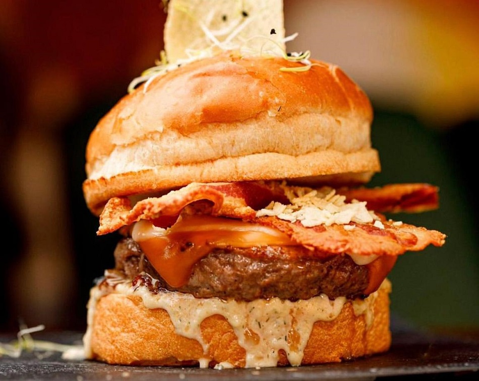 Completa el tercer puesto la burger “La Bichota”, de El Tarantín Chiflado. Una bomba de queso ahumado frito con pickles caramelizados en salsa japonesa sobre vaca madurada con chédar fundido y dosis extra de salsa Gucci.