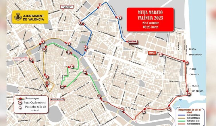 El medio maratón circulará por el siguiente itinerario: avenida de Tarongers, Ronda Norte, avenida de Alfauir, Primat Reig, Cabanilles, San Pío V, calle de la Trinidad, Pla de la Saïdia, Mauro Guillén, Menéndez Pidal, puente de las Glorias Valencianas, Gran Vía de Fernando el Católico, Gran Vía de Ramón y Cajal, San Vicente Mártir, Guillem de Castro, calle de la Blanqueria, Conde de Trénor, Pintor López, plaza de Tetuán, General Tovar, calle de la Paz, Marqués de Dos Aguas, Poeta Querol, calle de las Barcas, plaza del Ayuntamiento, avenida del Marqués de Sotelo, Xàtiva, Colón, Porta del Mar, Navarro Reverter, plaza de América, Jacinto Benavente, puente del Reino, paseo de la Alameda, plaza de Europa, Menorca, avenida de las Baleares, Joan Verdeguer, avenida del Ingeniero Manuel Soto, Doctor J.J. Dòmine, plaza de la Semana Santa Marinera, Marcos Sopena, Eugènia Viñes, Acequia de la Cadena y, de nuevo, avenida de Tarongers.