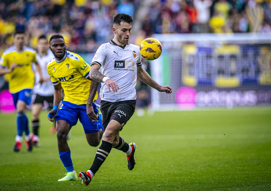 En el minuto treinta y tres Sergi Canós estuvo a punto de hacer el segundo tras una recuperación de Hugo Duro, omnipresente en ataque, y disparo del de Nules que Fali sacó bajo palos a correr.El Valencia reaccionaba pese a la reacción gaditana. Los de Baraja demostraban personalidad.
