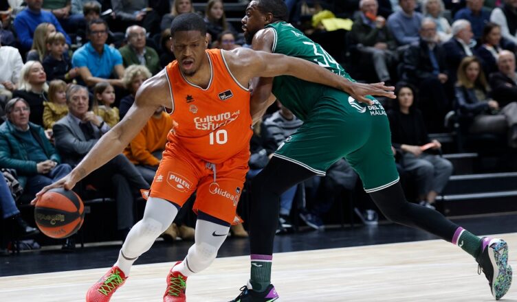 Álex Mumbrú comenzó el partido con el quinteto formado por Stefan Jovic, Chris Jones, Josep Puerto, Damien Inglis y Brandon Davies. Un acierto desde la media distancia de Jones y un triple de Puerto replicaron a la eficacia inicial de los malagueños con Djedovic sacando viajes al tiro libre. Un mate de Sima y un palmeo de Thomas ponían el 5-9 al llegar al minuto 6 en un inicio marcado por la agresiva defensa visitante que no dejaba buenas opciones ofensivas al cuadro taronja.