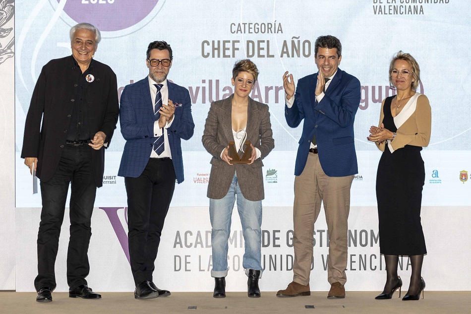 El colofón final ha sido el premio “Chef del año 2023”, que ha recaído en la joven Vicky Sevilla (Arrels, Sagunto, 1*, 1Sol), y que ha recibido de la mano de Quique Dacosta y Carlos Mazón, President de la Generalitat Valenciana, quien ha cerrado el acto con unas palabras de reconocimiento al sector: “cada vez que tengo que representar a nuestra tierra, nuestros productos y nuestra gastronomía, siento un gran orgullo, y es gracias a vuestro esfuerzo y trabajo”.