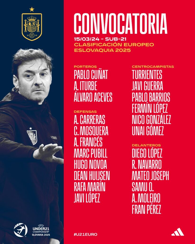 Con la novedad de Christian Mosquera en la lista, el técnico vuelve a llamar a Javi Guerra, Diego López y Fran Pérez