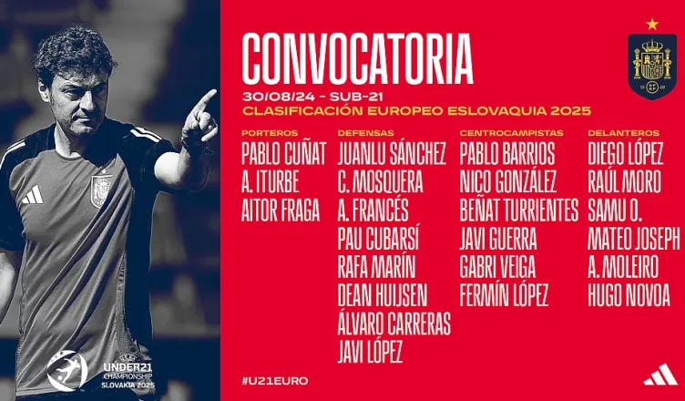 El Seleccionador nacional, Santi Denia, ha dado a conocer la lista de 23 jugadores convocados para afrontar los dos partidos con los que el combinado nacional abre esta temporada en el mes de septiembre. España retoma la fase de clasificación para el Europeo de Eslovaquia de 2025 midiéndose a Escocia y Hungría. El viernes, 6 de septiembre, a las 20.00 horas (hora peninsular española) jugará frente a Escocia en Tynecastle Park y cuatro días después, el martes 10 de septiembre a las 17.45 horas, visitará a Hungría en el Széktói Stadium de Kecskemét.