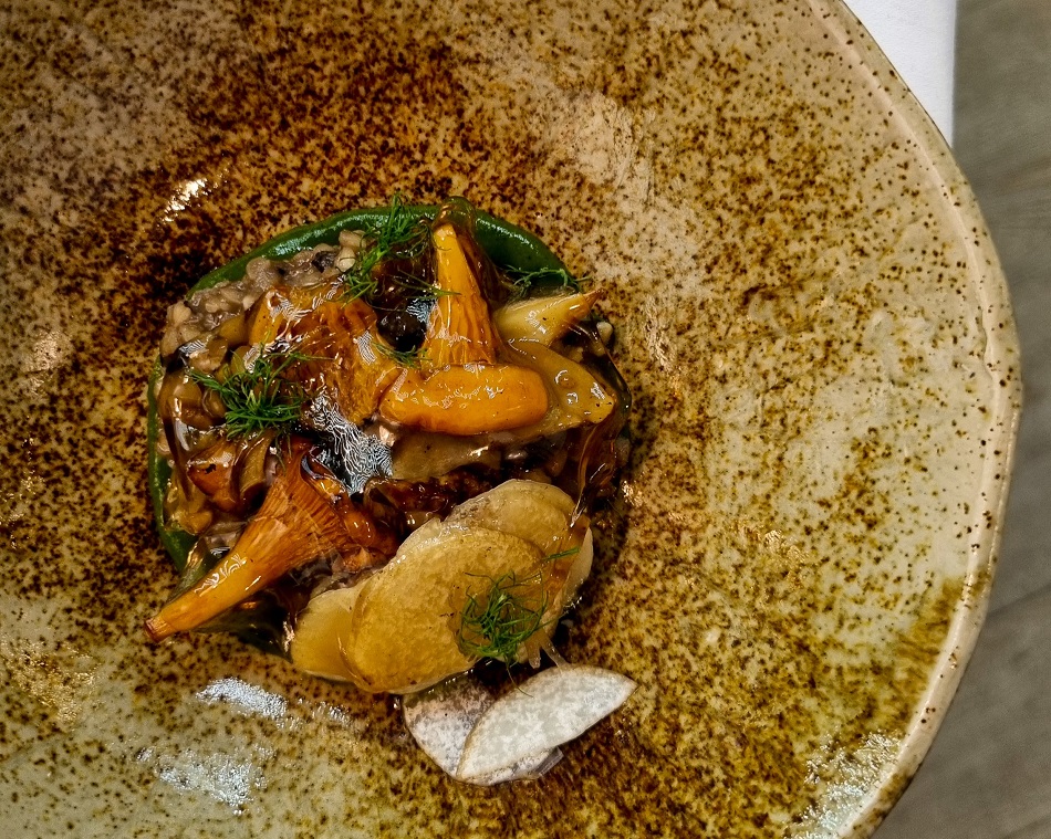 - 🍄 Setas de otoño de Asier Rojo, con chufa y eneldo, sobre trigo sarraceno.