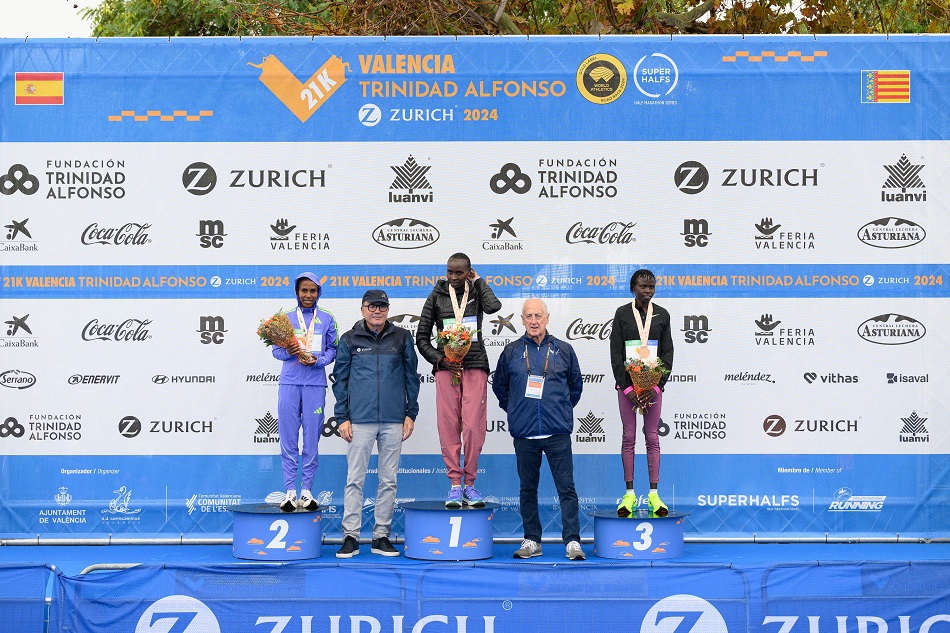 La keniana Agnes Ngetich también dejó su marca al completar el Medio Maratón en 1:04:56, estableciendo el segundo mejor tiempo de la historia en la categoría femenina: “Estoy muy feliz y orgullosa por alcanzar el segundo tiempo más rápido en mi debut. Valencia siempre estará en mi memoria. Hice el primer 10K rápido para intentar ganar aquí y estoy satisfecha con el resultado a pesar de la lluvia. Espero volver y, quién sabe, tal vez conseguir un nuevo récord, espero que sea en Valencia”.