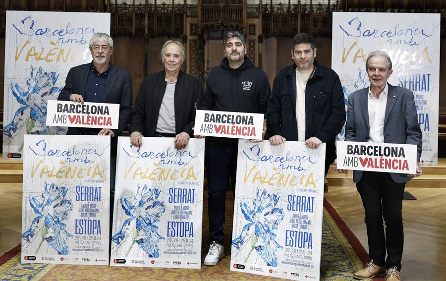Joan Manuel Serrat, Estopa, Andrea Motis, Judit Neddermann y Lucía Fumero ofrecerán el próximo viernes, 29 de noviembre, a las 20:30 horas, en el Palau Sant Jordi de Barcelona, un concierto solidario cuya íntegra recaudación se donará a los afectados por la DANA en Valencia.