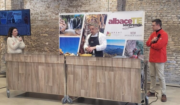 El espacio La Agencia Place, en pleno centro de la ciudad, acogió este lunes un trocito de Albacete, a través de quesos, vinos y platos elaborados por cocineros de la provincia. Para llevar a cabo esta iniciativa fue necesario el trabajo de la APEHT, Asociación Provincial de Empresas de Hostelería y Turismo de Albacete en colaboración con la Diputación de Albacete, en una muestra más de que las colaboraciones público-privadas en materia turística son esenciales para el éxito.