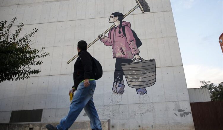 Foto de portada: Vista general del mural, de 16 por 8 metros, diseño del ilustrador valenciano Paco Roca, que el pintor Martín Forés se encarga de plasmar en la fachada de la Rambleta de Valencia, en homenaje a los voluntarios que han ayudado a los afectados por la dana en Valencia. EFE/Biel Aliño