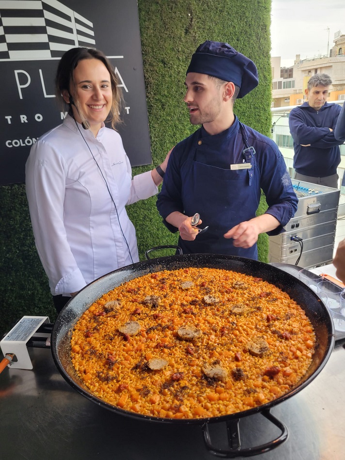 Con la presencia del alcalde de El Toro, José Arenes Vicente, y del director de Marketing y del sumiller de las Bodegas Vicente Gandía, Carlos García y Maximiliano Bao, respectivamente, hoy se ha presentado la promoción, a través de un Showcooking, en el GastroMercat de El Corte Inglés Colón a cargo de la chef del restaurante Xanglot, Sandra Jorge, que ha preparado el plato “Arroz seco de pelota valenciana trufada, calabaza y sobrasada”.