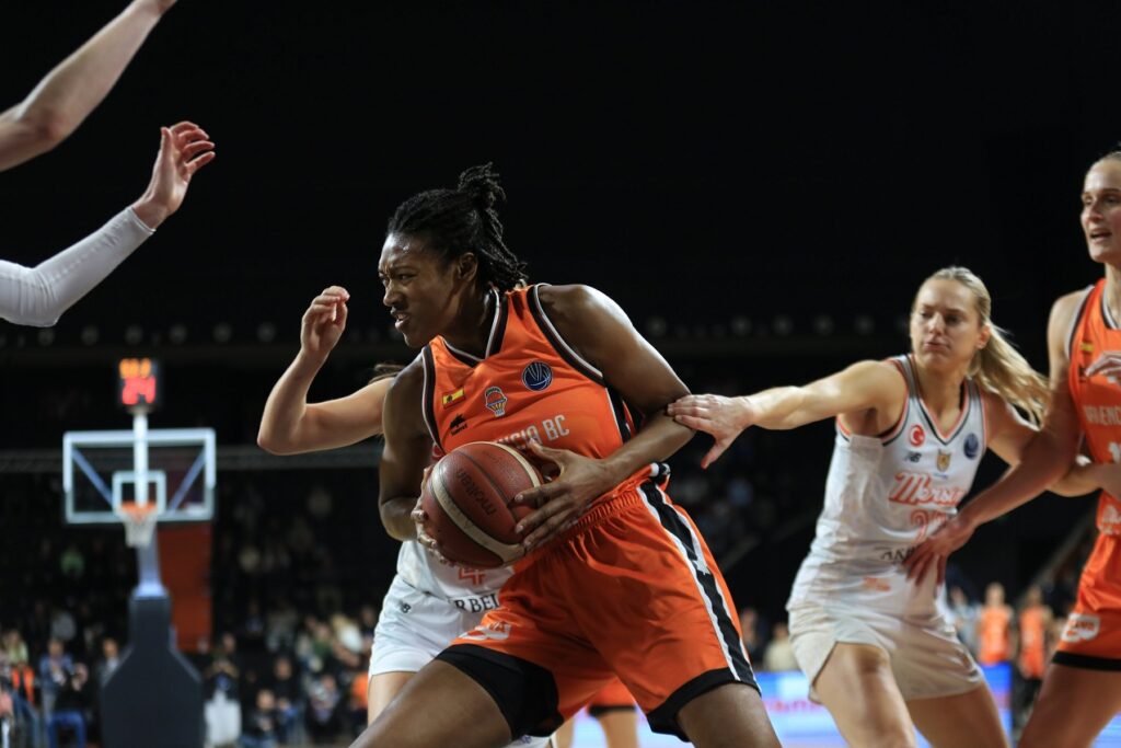 El quinteto inicial taronja estuvo formado por Leticia Romero, Alina Iagupova, Leo Fiebich, Nadia Fingall y Kayla Alexander. Desde el primer minuto, la seriedad defensiva y el control del rebote marcaron el plan de juego de Valencia Basket. Alexander inauguró el marcador tras una combinación con Romero, pero Mersin pronto demostró su pegada con una inspirada Howard. La falta de acierto exterior penalizaba a las visitantes, permitiendo que las turcas cerraran el primer cuarto con un 11-0 que les otorgó una renta de seis puntos (22-16).