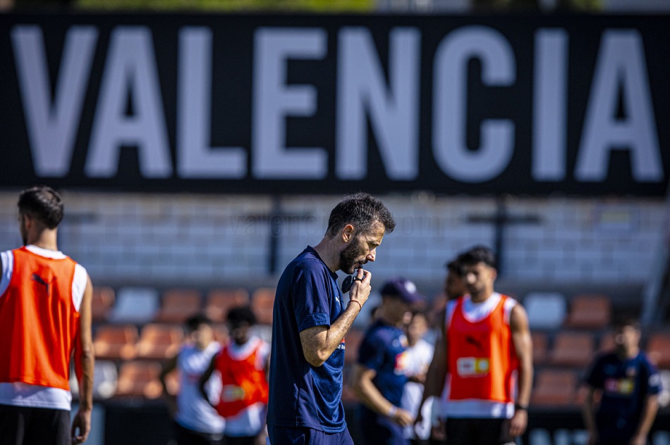 El entrenador del Valencia CF, Carlos Corberán, ha comparecido este viernes en la Ciutat Esportiva de Paterna en la previa del duelo de la Jornada 4 de LALIGA EA SPORTS ante el FC Barcelona, que finalmente se disputará en el Estadi Johan Cruyff.