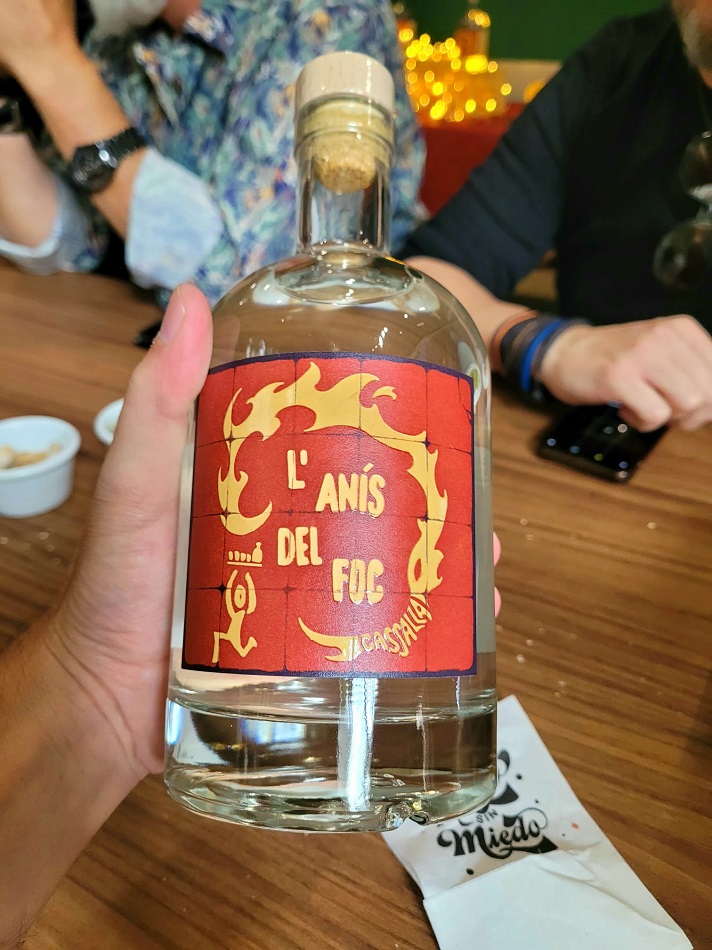 El proyecto nace del deseo de Antonio Manuel y Toni Martínez, padre e hijo, por seguir profundizando en la cultura valenciana. La idea llegó a los propietarios de la taberna hace dos años en un almuerzo con amigos. En el momento de pedir la cazalla, salió el tema de idear la suya propia. Lo que en un principio pareció una anécdota acabó tomando forma meses después, cuando decidieron iniciar la producción. “Un proceso de elaboración que arrancó hace ya ocho meses y al que se han sumado amigos del sector”, destaca Antonio Manuel. Ahora, esta puede comprarse en la taberna de la calle San Vicente Mártir, 42, así como en la página web (anisdelfoc.es) y en el puesto Dulces de España del Mercado Central, el cual también regentan.