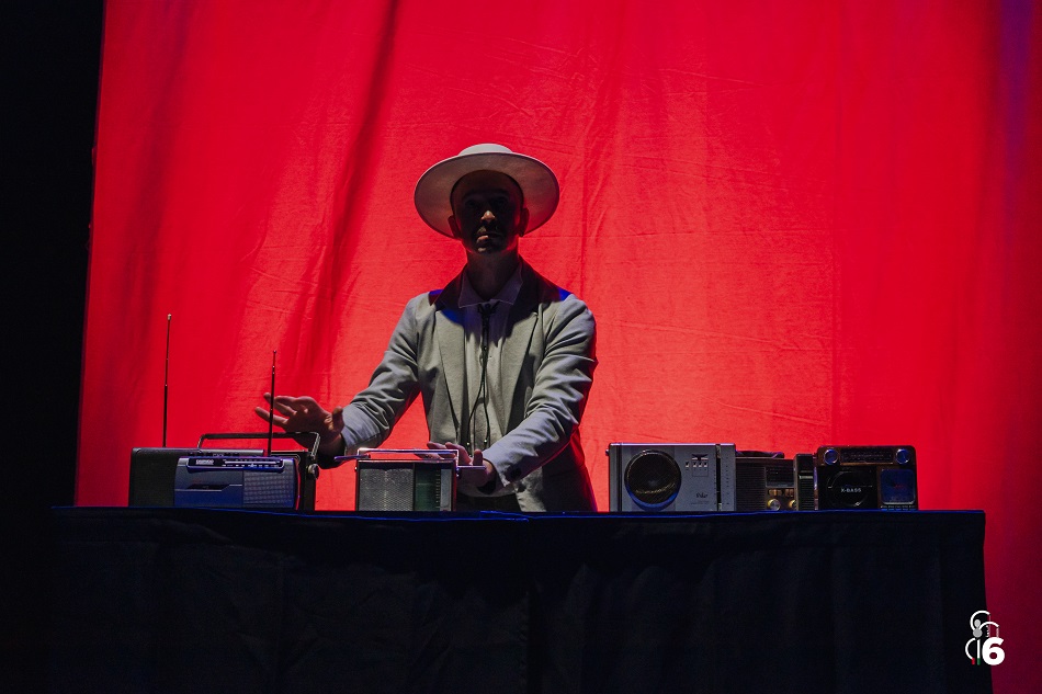 En “Oráculo F.M.”, el público se adentra en una demostración tan cómica como perturbadora. Su protagonista, Apollonius, se presenta como un experto en comunicación capaz de manipular radios en vivo para generar un paisaje sonoro lleno de señales, frecuencias e interferencias.
