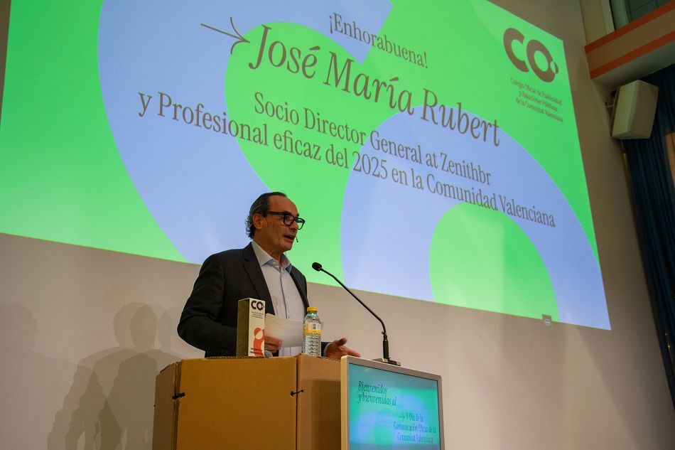 El gran protagonista de la jornada fue José María Rubert Fernández, Socio Director General de Zenithbr (Publicis Groupe), distinguido por su liderazgo, visión estratégica y contribución decisiva al desarrollo de la comunicación y el marketing en la Comunitat Valenciana.