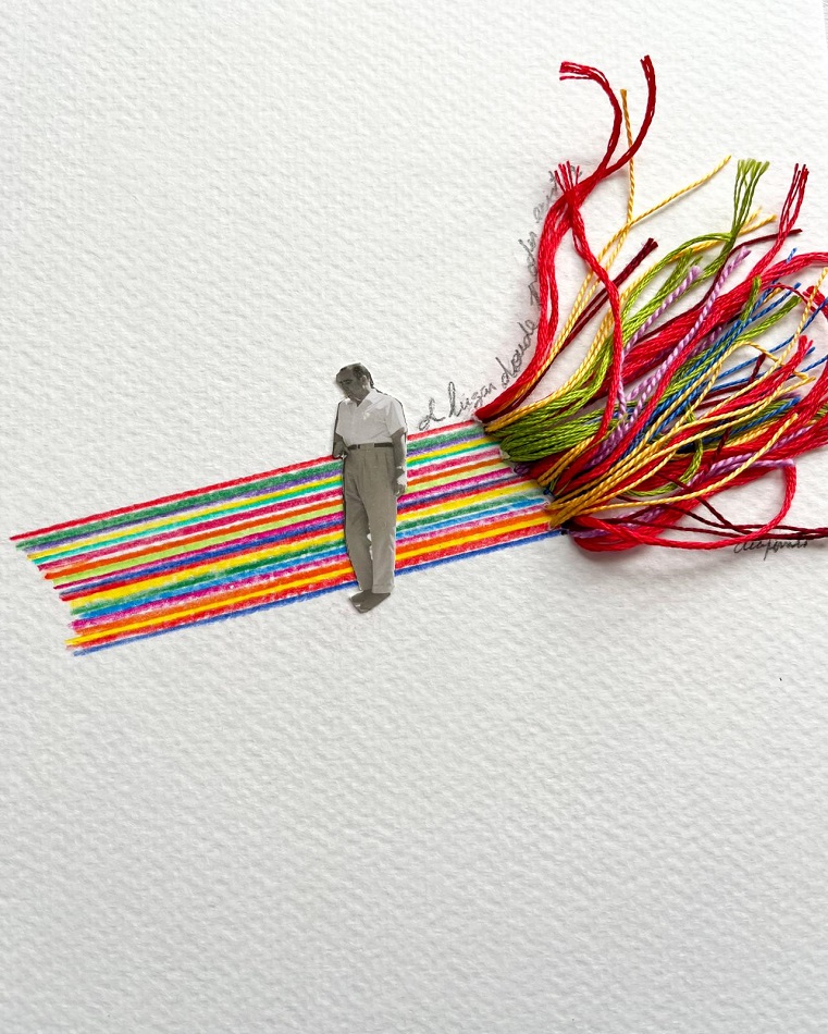 Especializada en collage y en la combinación de fotografía, dibujo, pintura y objetos cotidianos, Ferrando construye un lenguaje visual íntimo y experimental que transforma fragmentos de vida en narrativas híbridas. En esta serie, la fotografía adquiere un papel protagonista como punto de partida, sobre el que la artista incorpora materiales como hilo, acuarela, textos o elementos encontrados -botones, papeles o alambre- para crear piezas únicas que dialogan con la memoria personal y colectiva.