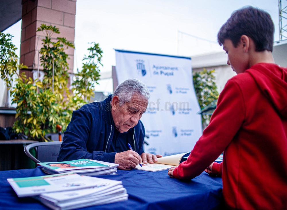 La presentación ha contado con la presencia del propio Pepe Claramunt, acompañado por figuras destacadas del club como Ricardo Arias, Vicente Guillot y José Vicente Forment, además de representantes institucionales y los jóvenes futbolistas de la UD Puçol.
